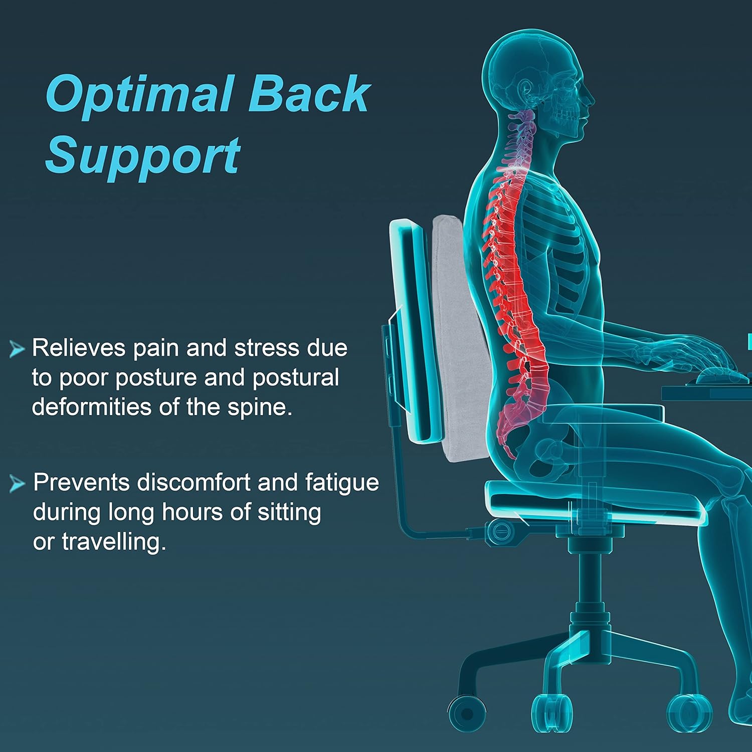 • Helps reduce pain caused by back strain, disc issues, and muscle fatigue
